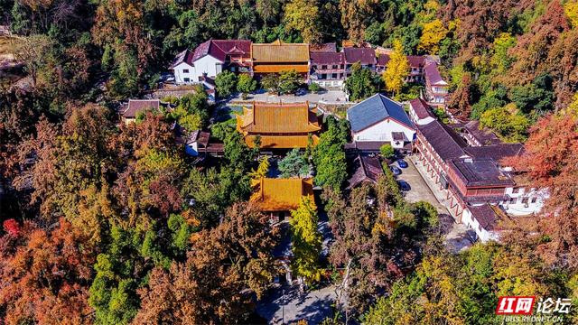 移步换景,岳麓山的魅力不止于此。茂密树林深处,古亭翼然,飞檐翘角诉说历史;开阔坡地之上,花团锦簇,色彩明艳;登高远眺,更有错落古建群落隐现于斑斓林海,古朴厚重,与连绵青山相映成趣。